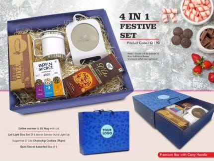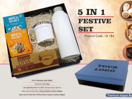 The 4 in 1 Gray Corporate Gift Set is a masterpiece of style, function, and sophistication. The complete luxury gift set comprises a stylish metal keychain, an impressive stainless steel bottle, a classy metal pen, and an executive A5 PU notebook-all nested comfortably within a strong Kraft gift box.