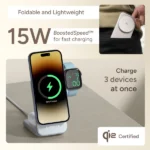 Meet the AerosynQ Trio 2 3-in-1 Magsafe Wireless Charger! The all-in-one solution for convenience of charging all your devices – iPhone, AirPods, and Apple Watch all at once. The Trio 2 incorporates advanced Qi-2 technology and offers 5W to 15W wireless charging output and 2.5W for Apple Watch that ensures efficient and safe charging for any devices.